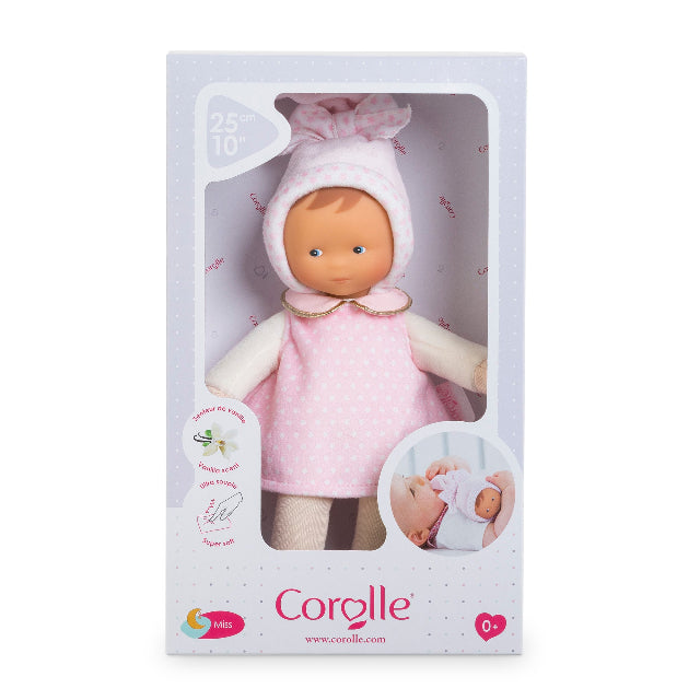 Perfectly sized at 25 cm for tiny hands to grasp and hold by her stocking cap, arms, legs, or even her dress, Miss is made from ultra-soft fabric that makes her wonderfully cuddly. Her sweet, realistic vinyl face charms and comforts baby, delicately scented with Corolle's signature vanilla fragrance that makes every cuddle extra special.